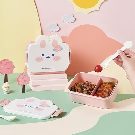 兔子两格饭盒带叉勺