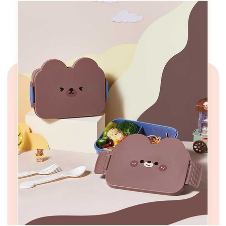 小熊两格饭盒带叉勺