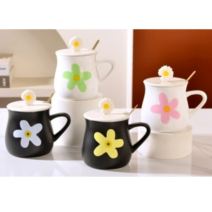 TAZA FLOR CON TAPA Y CUCHARA 500ML