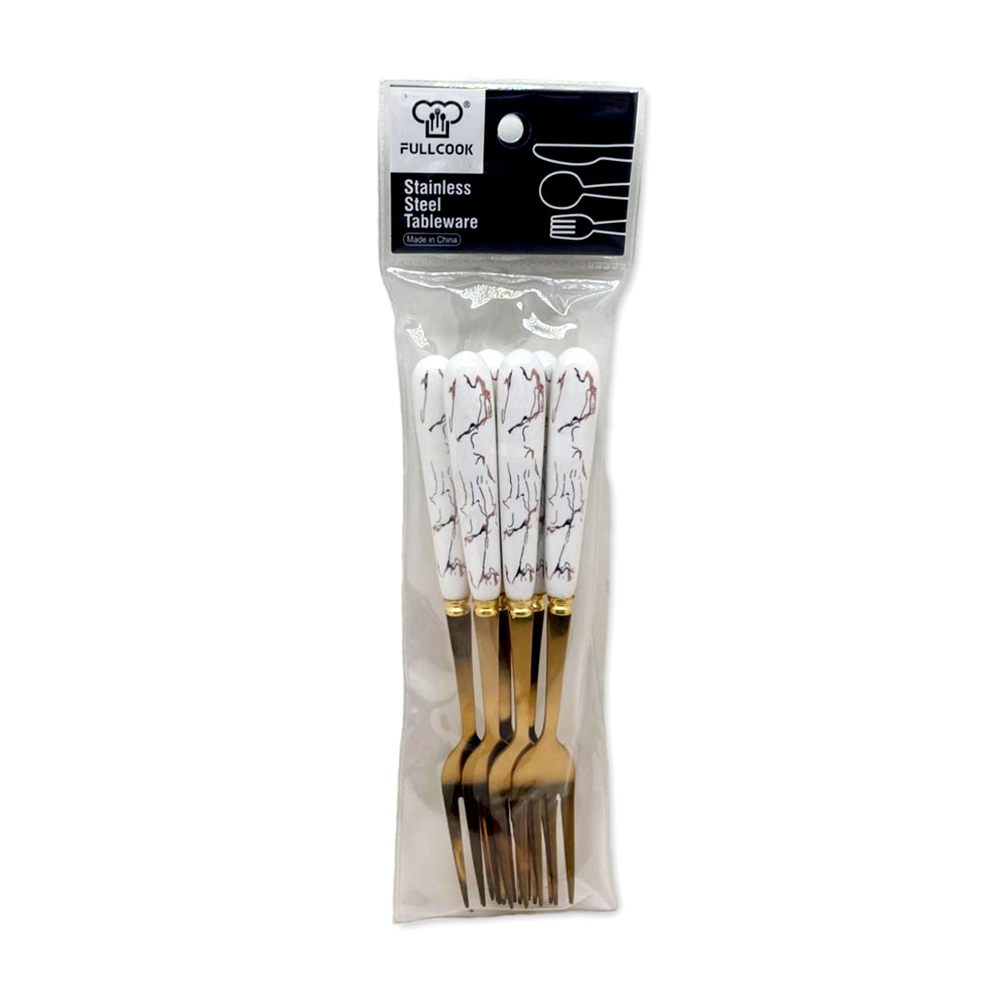 TENEDORES DORADOS X6 MANGO MÁRMOL
