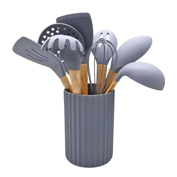SET X9 UTENSILIOS SIL Y MAD + BASE CAROL