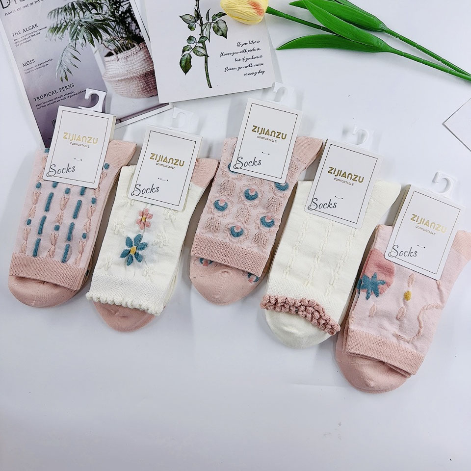 女棉袜*10 中筒 卡通 花纹