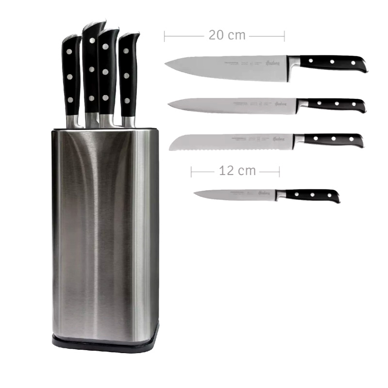 SET X4 CUCHILLOS + BASE PLATEADA HUDSON
