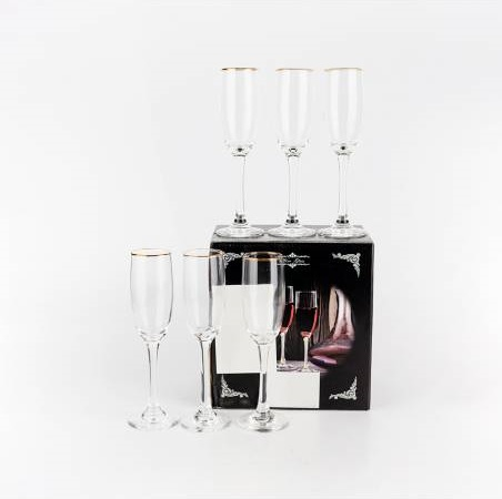 SET X6 COPAS CHAMPAGNE BORDE DORADO