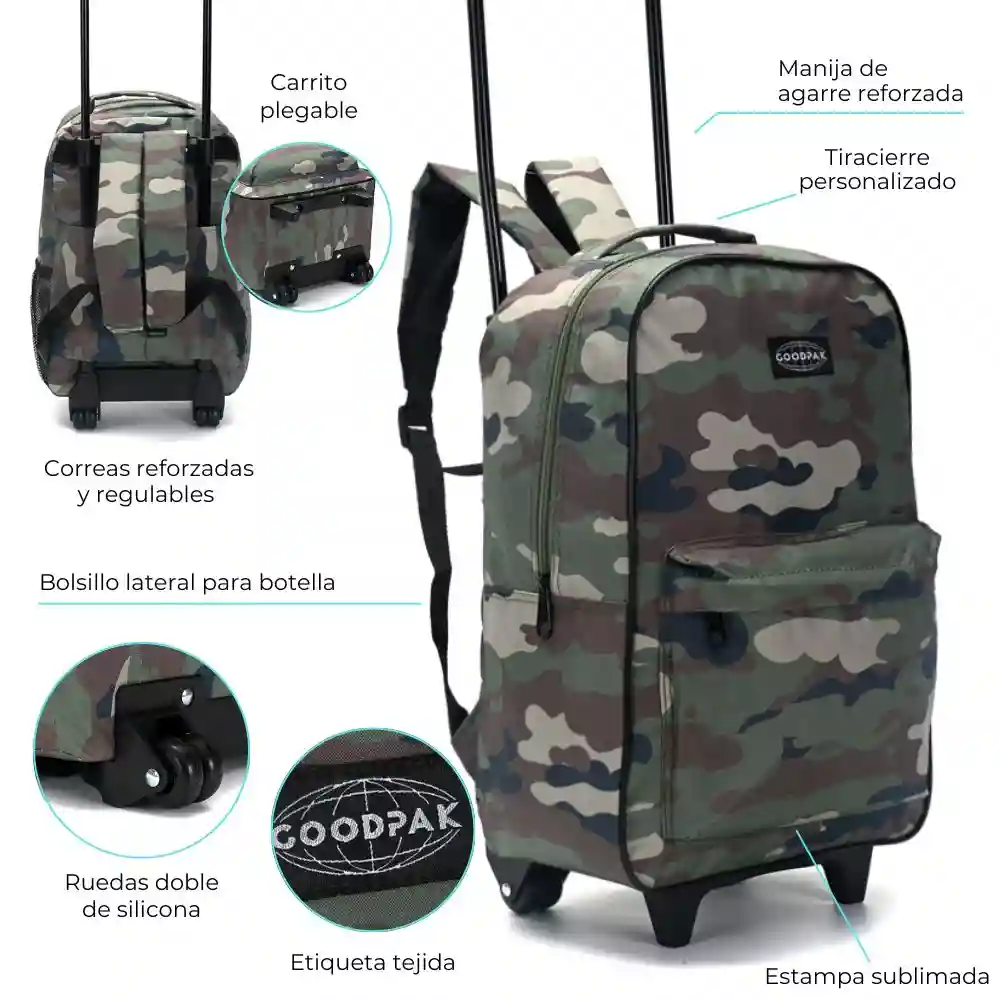 MOCHILA CAMUFLAJE VERDE CARRITO, GOODPAK
